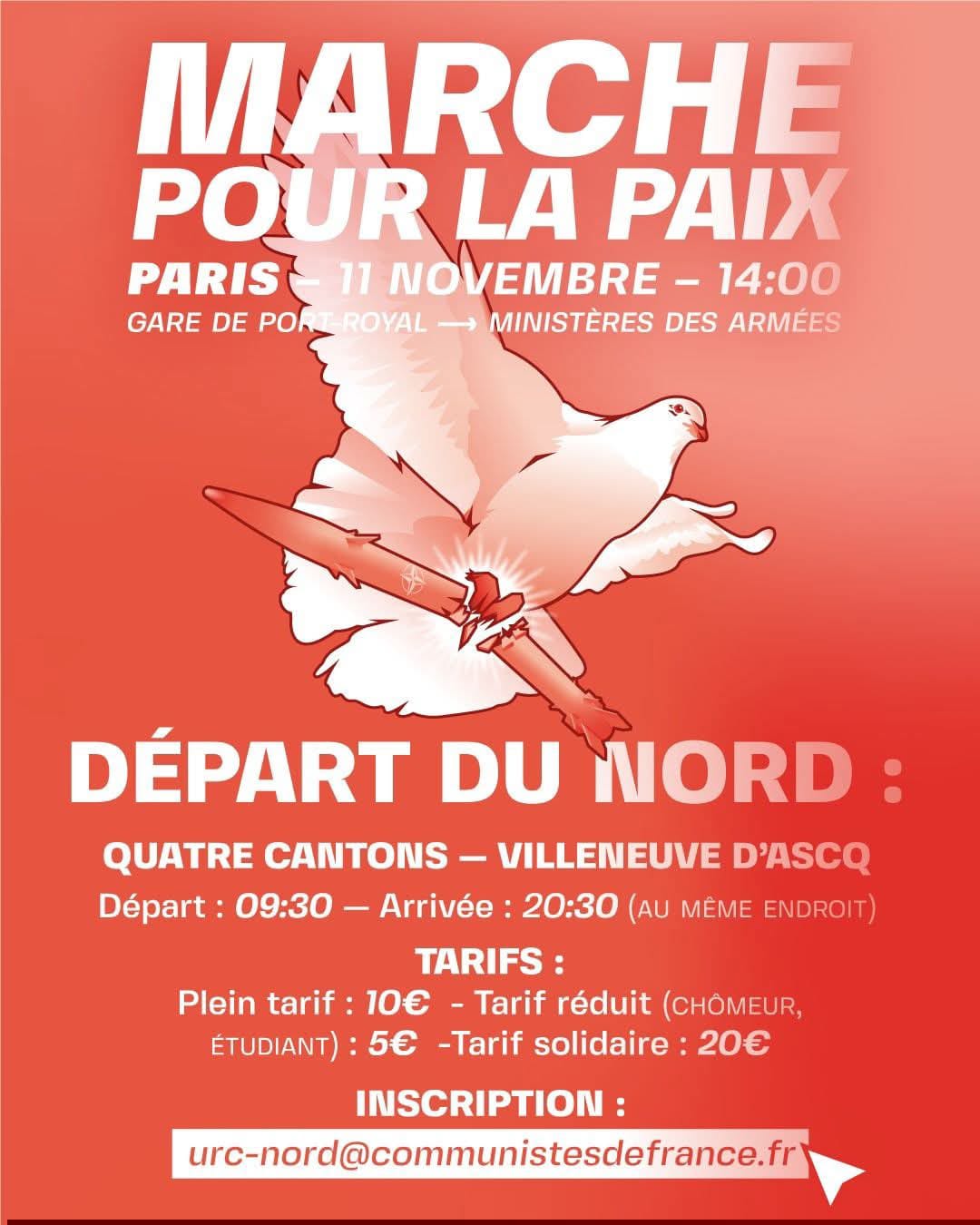 manifestation à Lille samedi 8 novembre à 15h, place du Théatre