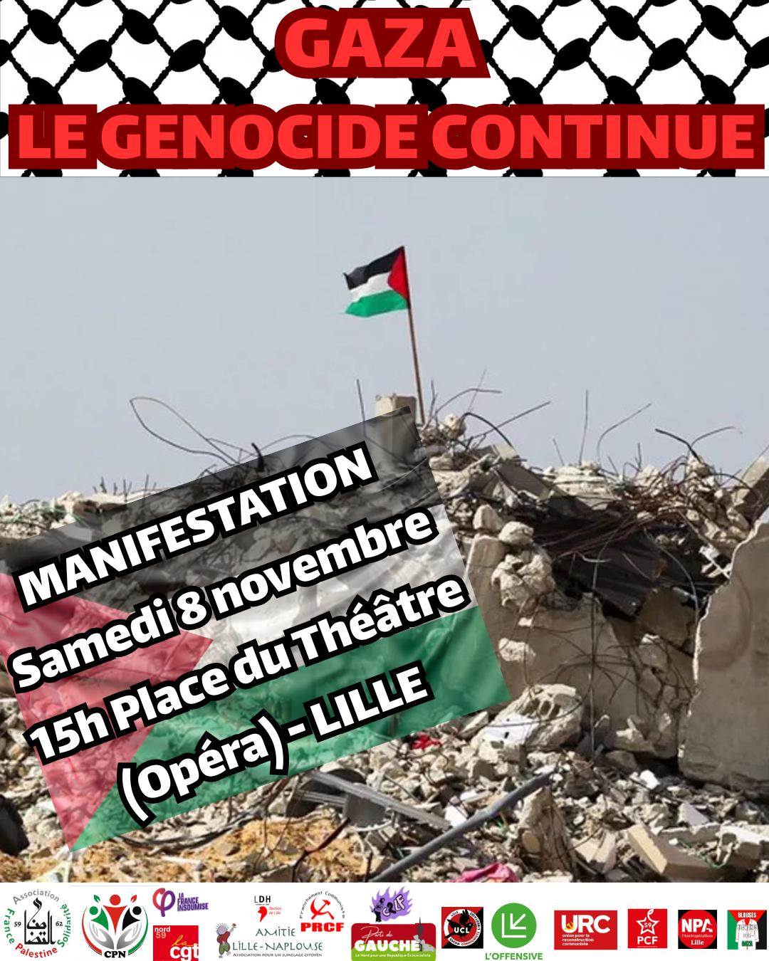 Samedi 8 novembre à 15h à Lille: Manifestation « Gaza, le génocide continue » – Départ place du Théatre (devant l’Opéra) – Lille >> |