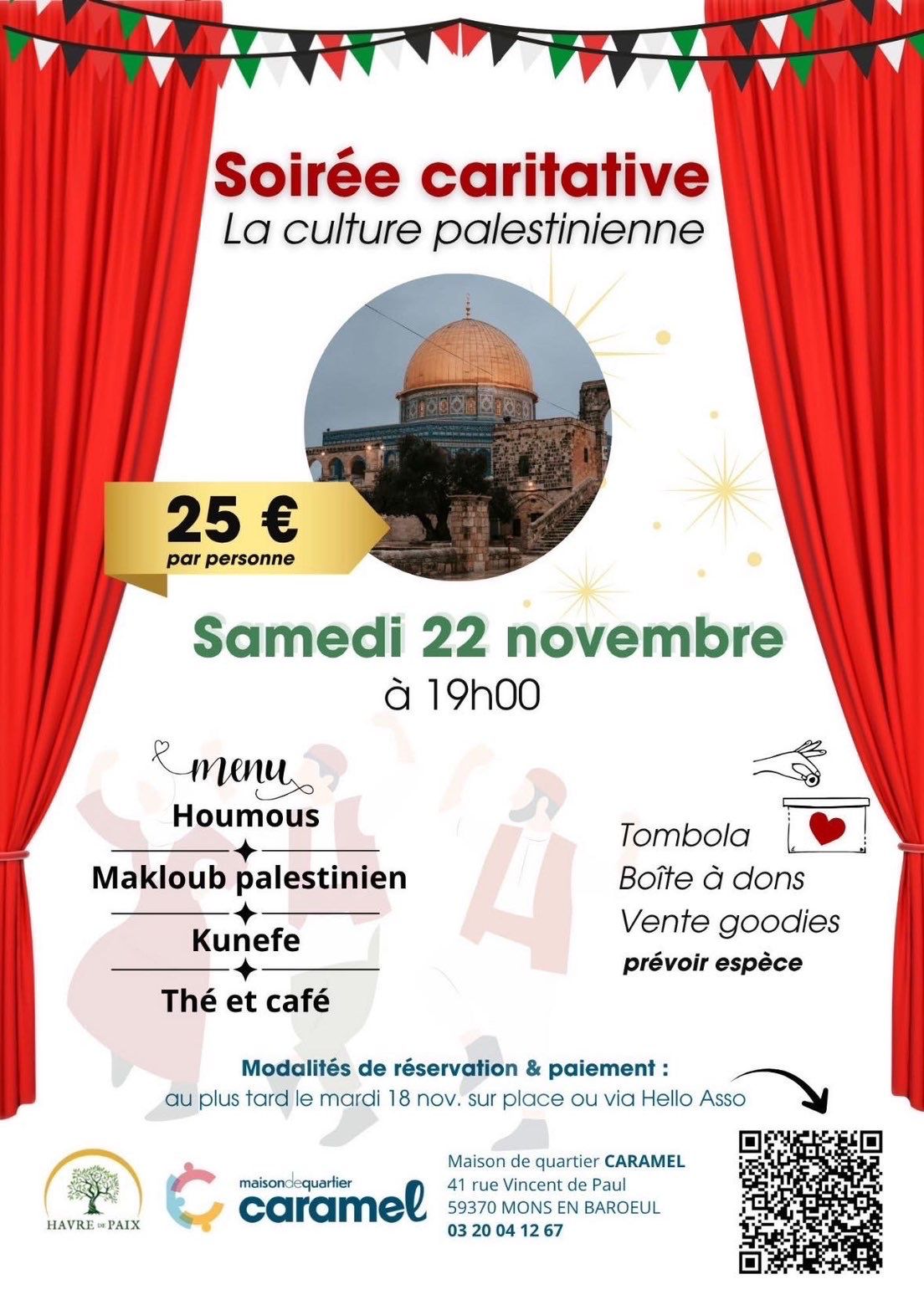 Samedi 22 novembre à 19h à Mons-en-Barœul: Soirée Caritative Autour de la culture Palestinienne avec stand AFPS par la Maison de quartier Caramel et Havre de Paix >> |